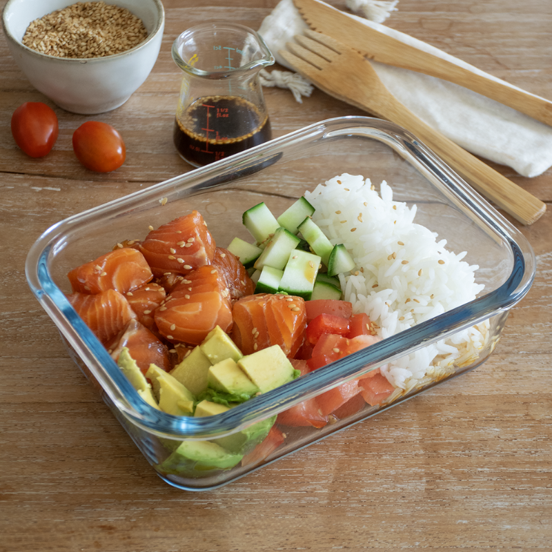 Astuce Pebbly : Pour transporter ce pokebowl, notre Lunchbox en verre avec couvercle en bambou est l'option idéale. Non seulement elle garde votre repas frais et appétissant, mais elle est aussi hermétique, ce qui en fait une option parfaite pour un déjeuner nomade. De plus, son design élégant en fait un choix esthétique autant que pratique.