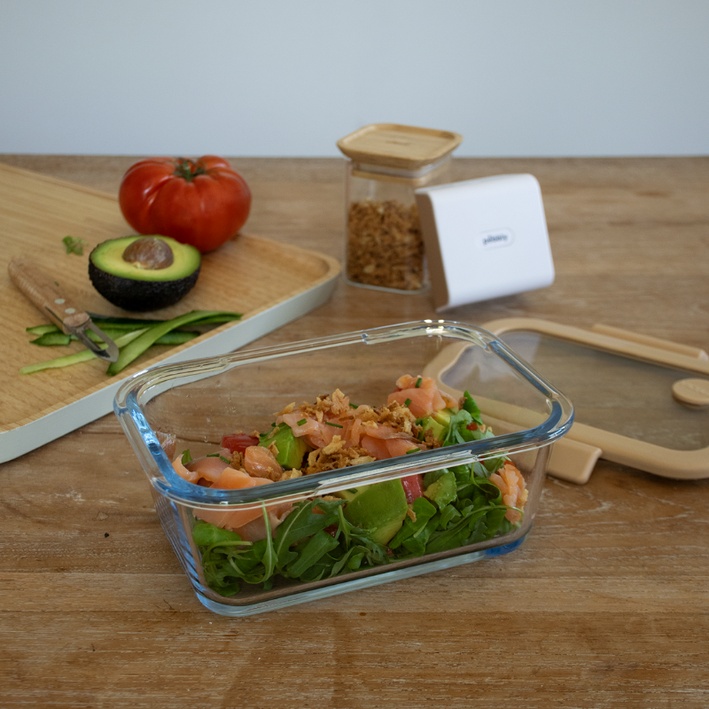 Astuce Pebbly : Pour préserver toute la fraîcheur du saumon fumé, nous vous recommandons notre boîte sous-vide en verre. Grâce à ce système, votre salade nordique restera aussi fraîche que lorsque vous l'avez préparée, même après plusieurs heures. Idéale pour un déjeuner au bureau ou en plein air, cette solution de conservation vous assure de déguster votre salade dans les meilleures conditions.