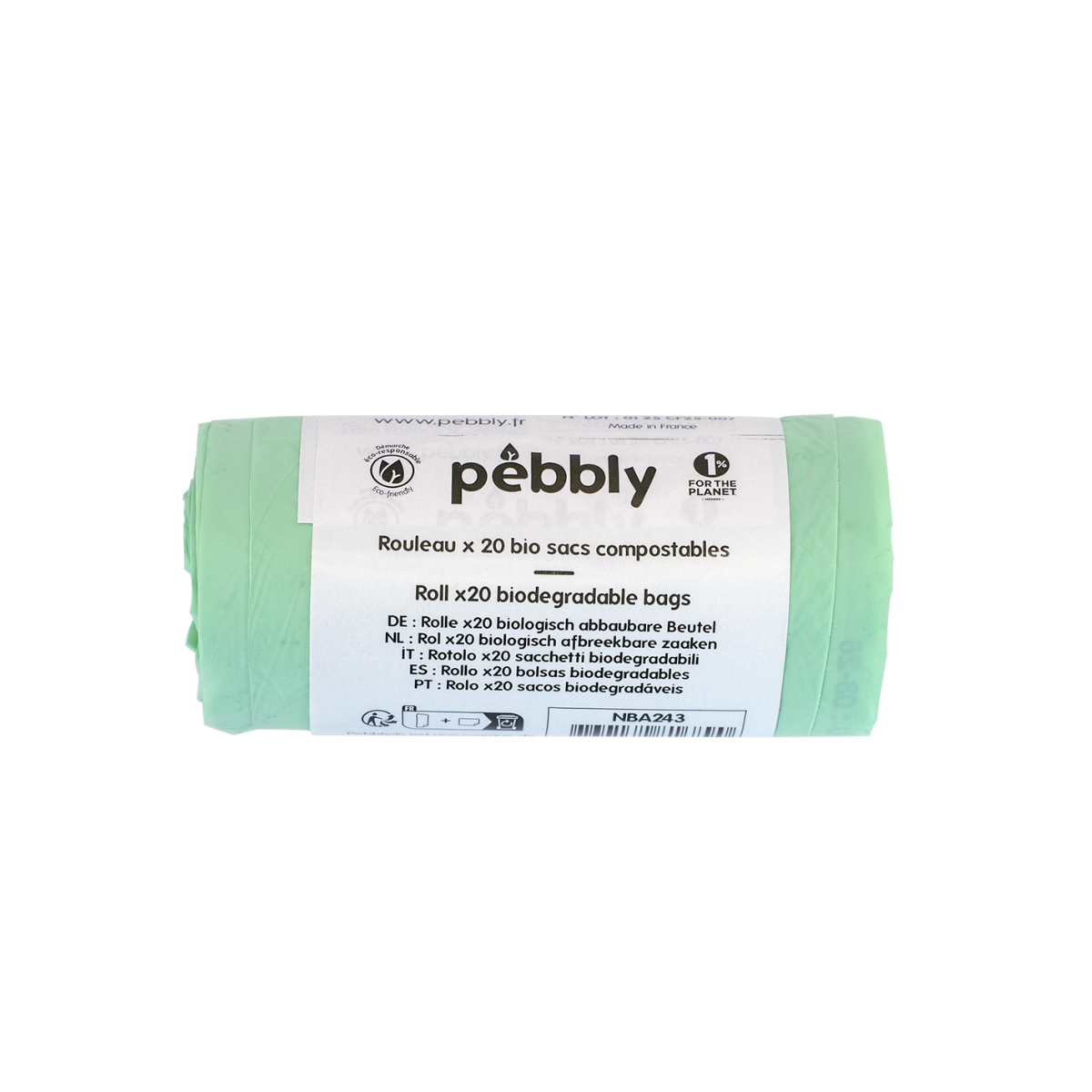 Le rouleau de 20 bio-sacs Pebbly est fièrement fabriqué en France. Un choix engagé qui soutient le savoir-faire local tout en réduisant l’empreinte carbone liée au transport. Parce que chaque petit geste compte dans notre démarche écoresponsable.