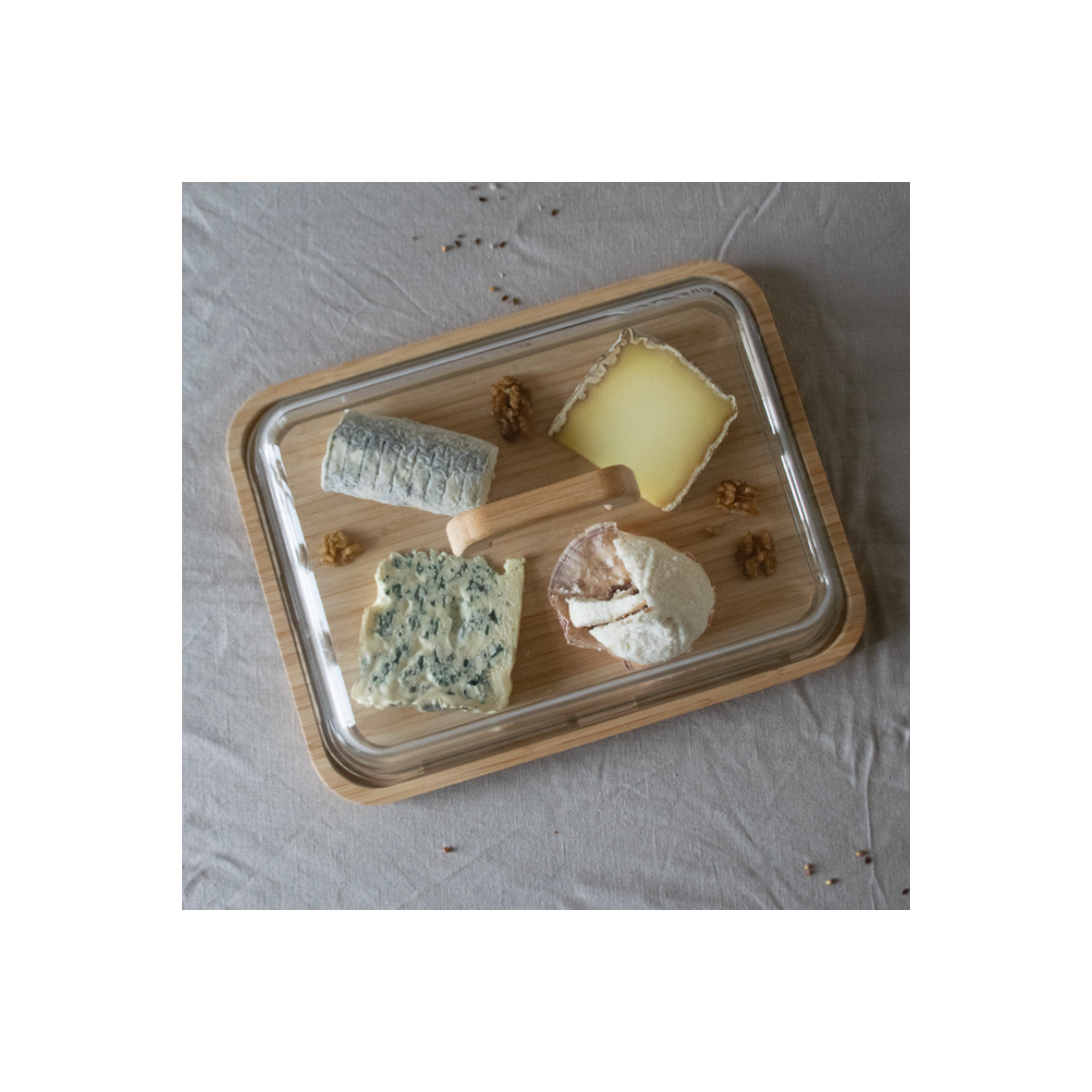 - Le plateau à fromage associe une base en bambou naturel et un couvercle en verre doté d’une anse pratique. Il protège vos fromages tout en apportant une touche tendance et naturelle à votre table.